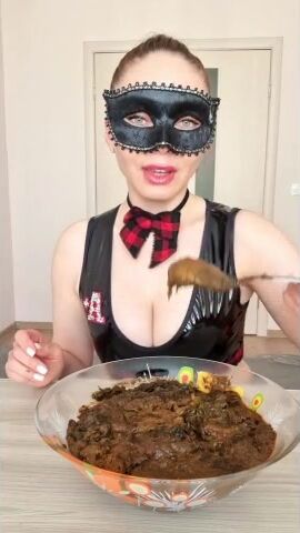 Russian babe smears poop on her face