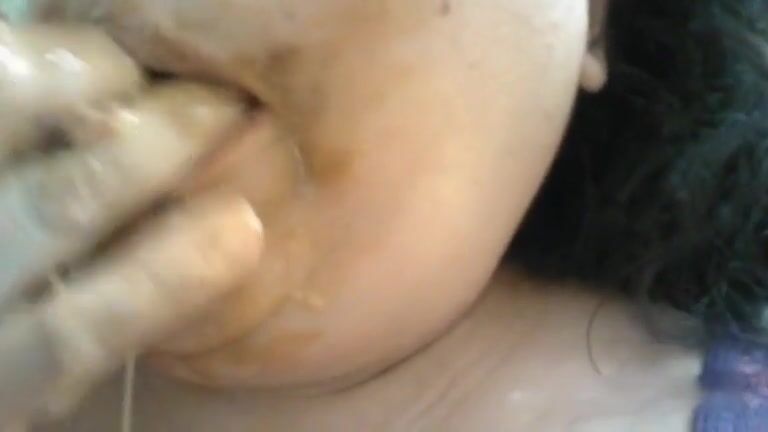 Alternative girl masturbates with own shit