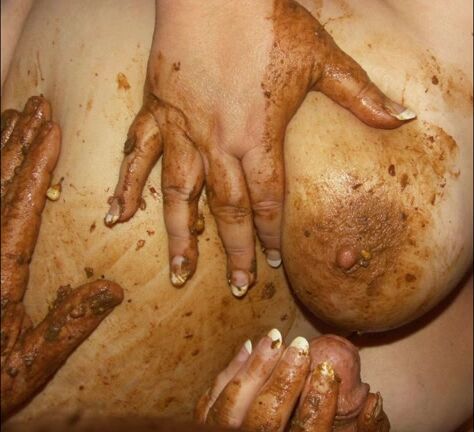 Russian babe masturbates with brown shit