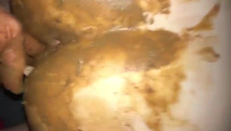 Beautiful brunette smearing crap on her butt