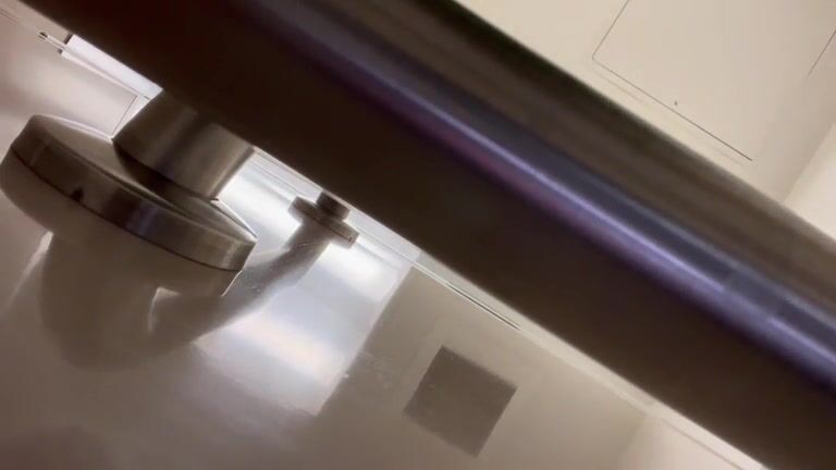 Brown haired teen shitting in public bathroom