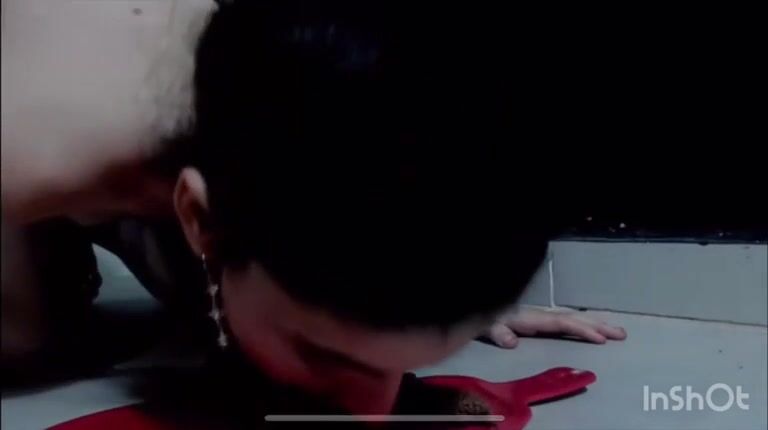 Lady eats and licks shit off the floor