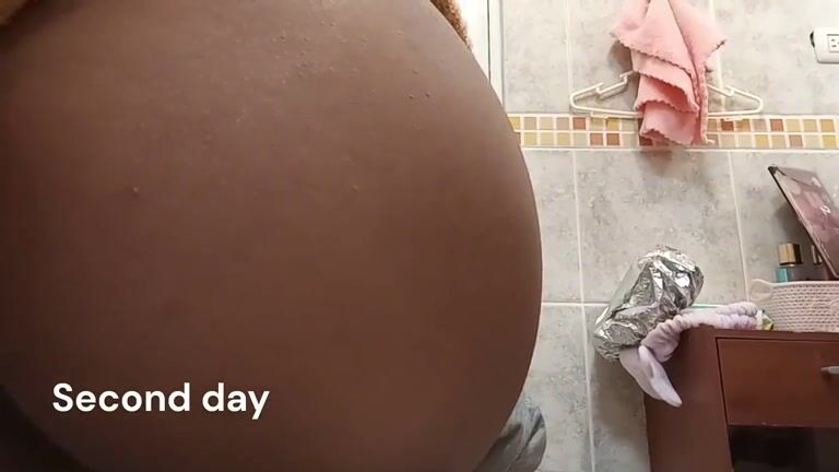 Washing her ass after pooping