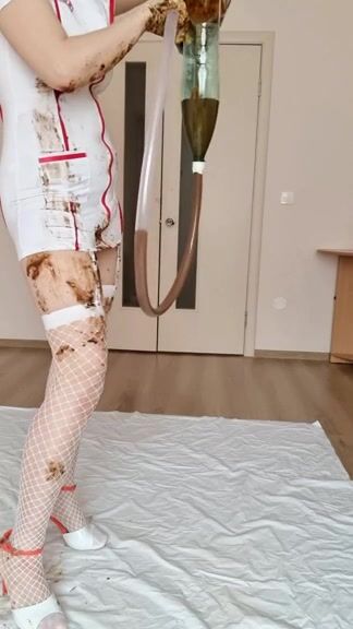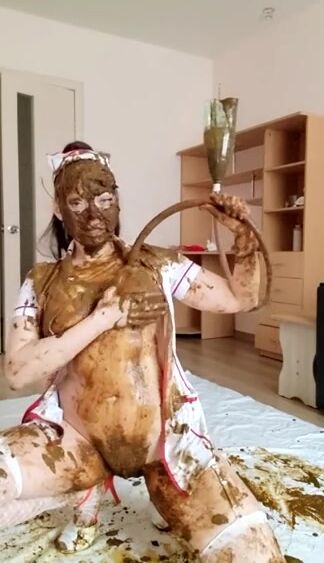 Gorgeous babe smearing shit and sucking dildo