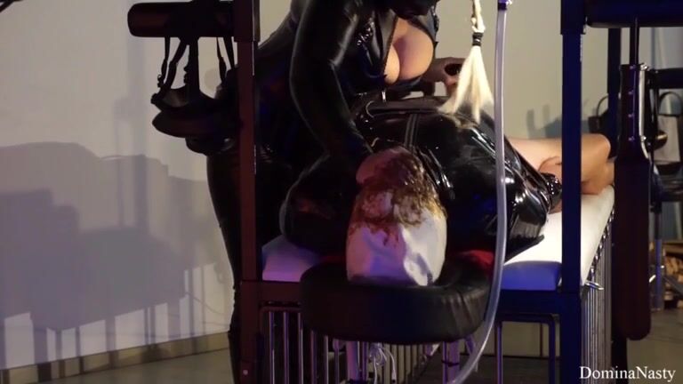 Scat show in latex outfit