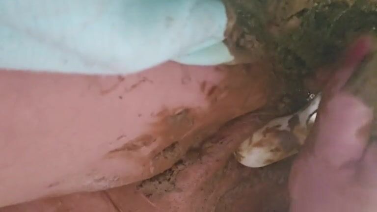 Nerdy girl masturbating with poop