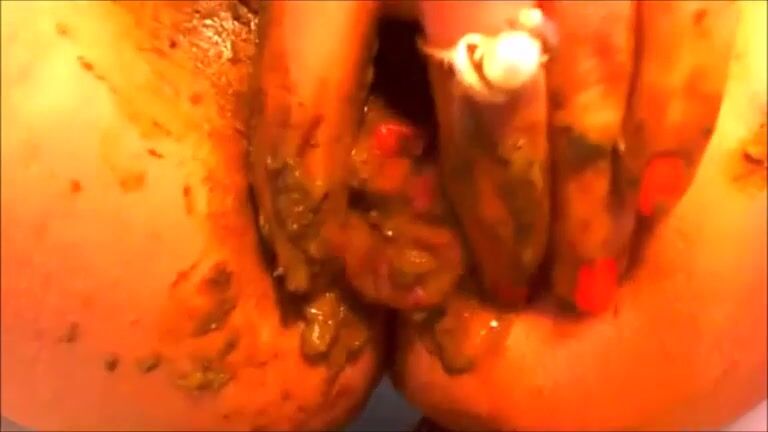 Kinky girl pooping on her knees