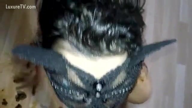 Brunette eating shit
