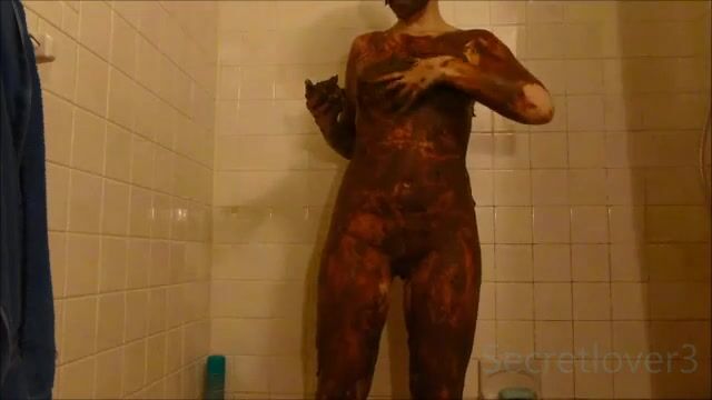 Fat slut smearing saved shit on her black skin