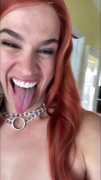 Redhead strip tease and shit nicely on the dildo