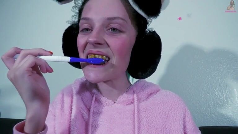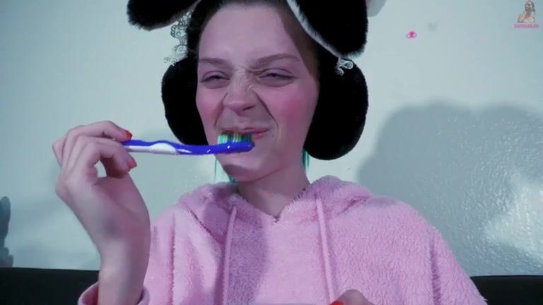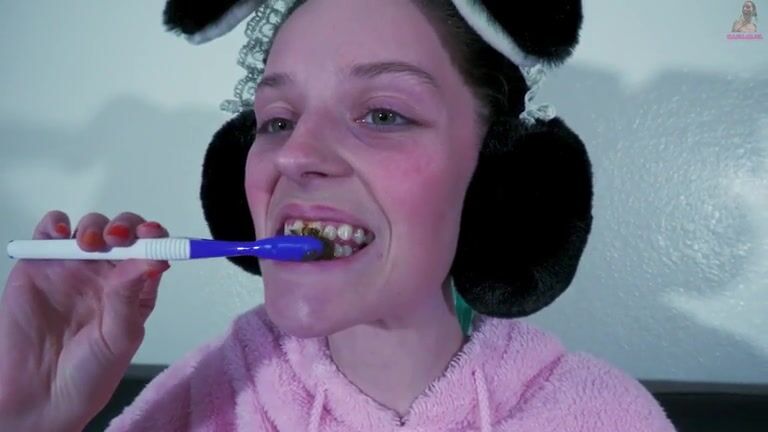 Teen Gal Brushes Her Teeth With feces