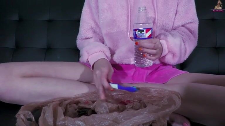 Kinky babe teasing and pooping with tooth brush