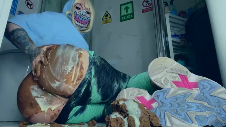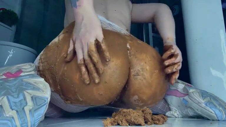 Slut smearing shit on her lovely body