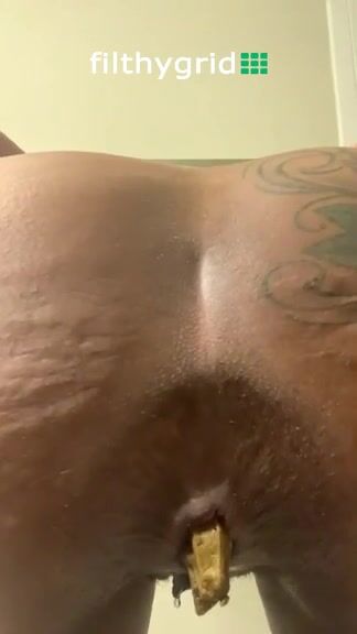 Shitting on a long dildo