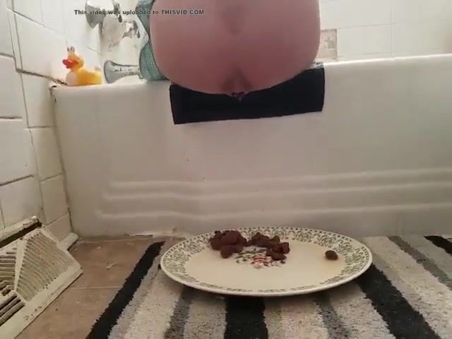 «Attractive lady, a girl with long brown hair, first drops her jeans and pees into the loo, but then, she takes a large plate,sets it on the floor outside the bath, sits on the edge of same, and drops a really huge poo, many many turds, with much grunting, and finally, confirming her sexual pleasure, drops a white creamy ejaculate from her genitals. A nice video, although would have preferred the poo dropped naturally into the WC, just like the pee.»