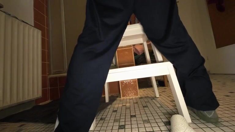 Sexy bubble teen pooping on bathroom floor