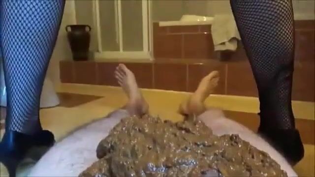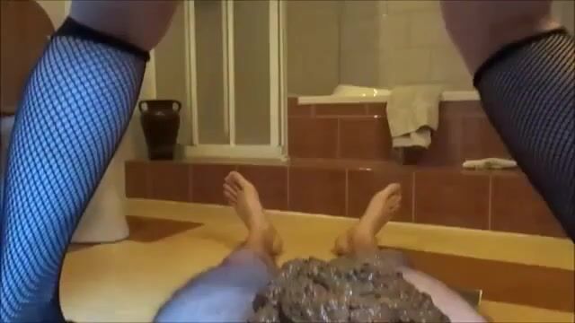 Slutty lady in stockings pooping on her lover