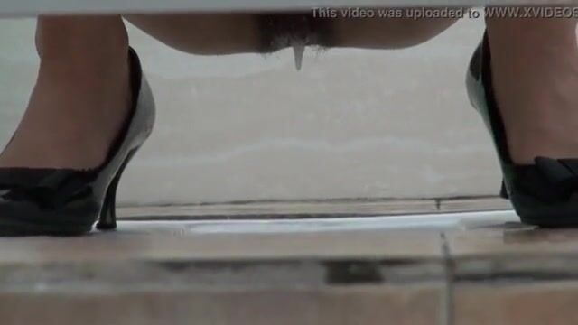 Sexy woman drops her jizz and a big turd in a public