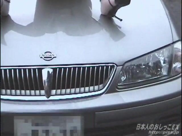 Asian hot girl piss on Nissan hood