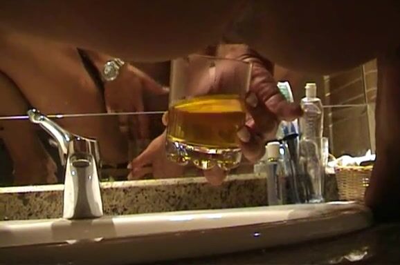 Bathroom own pee drinking babe