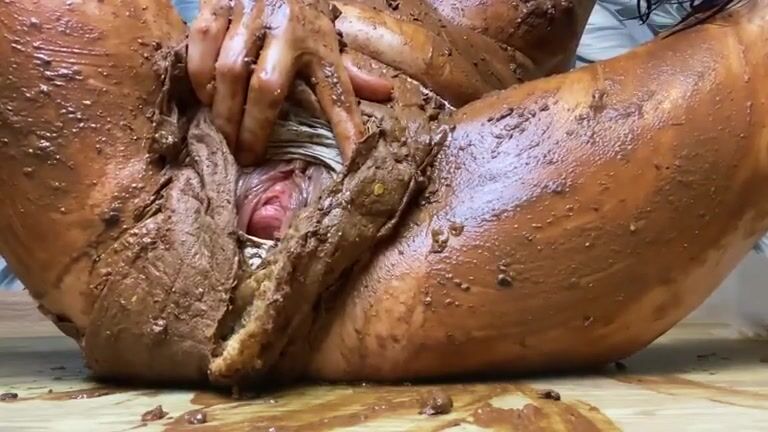 Slutty brunette babe spread legs for smearing shit