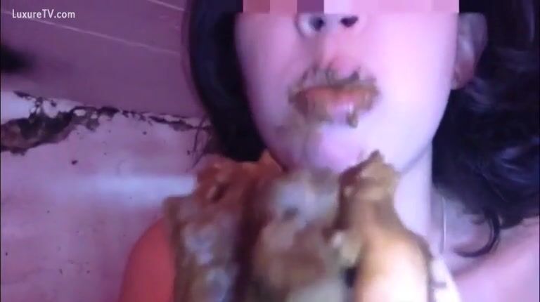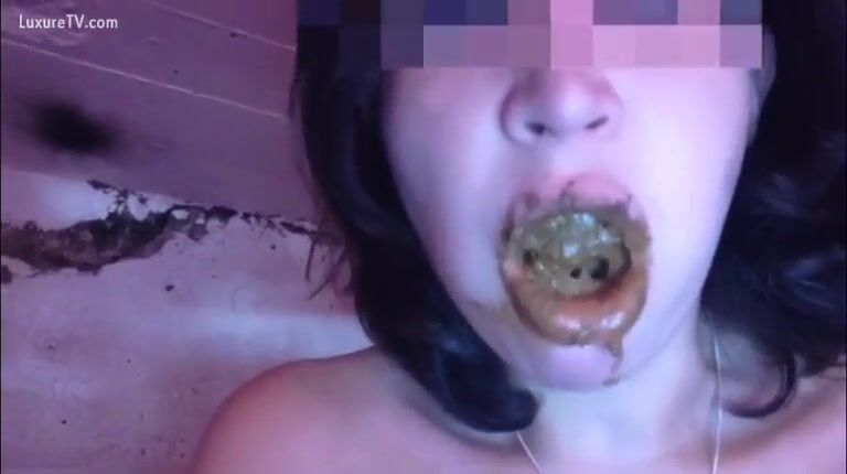 Cute girl eating loads of shit
