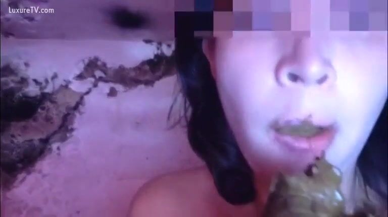 Eating fresh poop from her ass