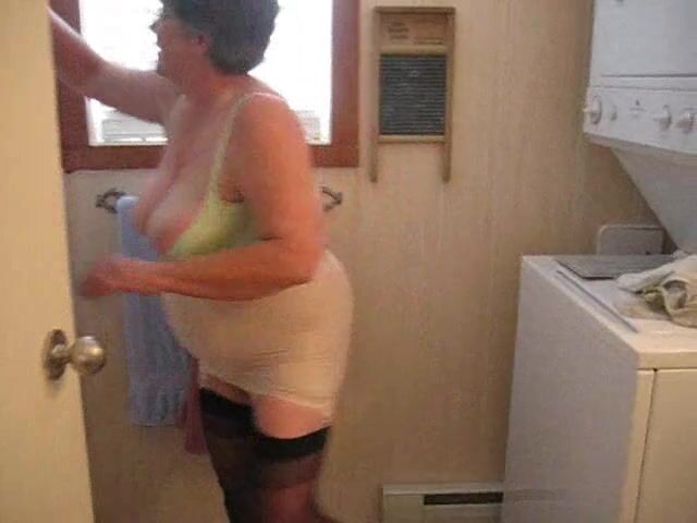 Mature lady with huge saggy boobs and hairy pussy piss teasing