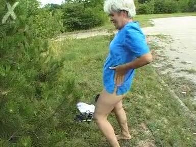 Granny outdoor shitting show