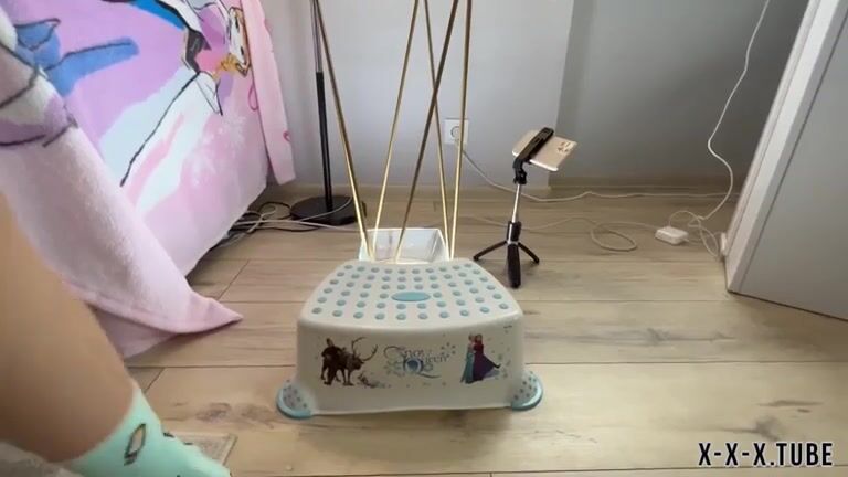 Cute girl peeing on the stairs