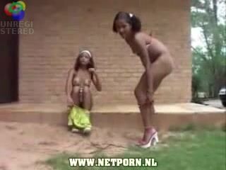 Cute African chicks pissing together
