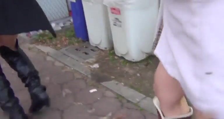 peeing woman takes a piss in an alley