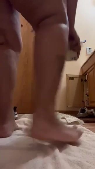 Holding her clit while pooping on the floor
