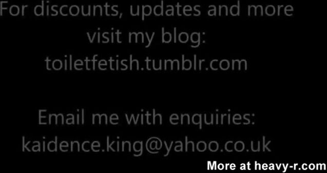 «Kaidence announces that she is desperate; she appears to be an attractive, well endowed lady with fair hair, from UK, and she appears in a two piece black outfit, which she hastily removes to reveal an ideal body, with super bulky, (but I think natural), breasts, which she plays with massages and sucks intensely; she removes her bikini bottom, slapping her self on the bum cheeks, exposing her asshole; she continues to play with herself,particularly swelling much on her bum hole, all the time talking much to the viewers; she then climbs up upon the loo seat and squats, super sexily, legs well spread; she says that she is ready for this, and massages her genitals, then starting to grunt, drops a really long, bulky soft turd in the WC, with a loud plop; white ejaculate appears on her genitals, she drops another, smaller turd, with a plop, and all the time super grunting sexily; she grunts and groans, and must be feeling intense sexual pleasure, as indicated by the long stream of white discharge ejaculate, oozing from her genitals; she keeps opening and closing her legs as she squats, announcing herself to be feeling much better; she takes papers and wipes her bum, showing us the stain, at least twice, two wipes, that is, the third being cleaner, with pleasure; she then flushes; she smiles and kisses farewell, but then, after 10 minutes, she tells us that she thinks that there is more to come out, so we have her again in super sexy squat over the loo,although she only manages to drop some tiny drops of excrement, and she admits to only a few spots, and farewells once more with a kiss, but soon returns with a bonus:so, we have her in the same sexy squat, and she does indeed provide a bonus in the form of another good soft turd, which drops in; unfortunately, there is no audio to hear the plop; however, overall a very super sexy stimulating scat video with a super stimulating model.»