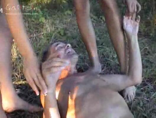 Three girls feed tied slave with shit