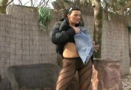 Gorgeous European busty pissing in her pantyhose