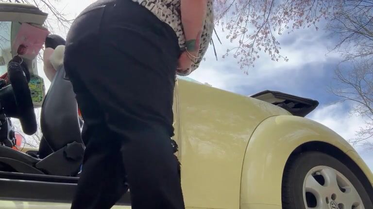 Chubby ass lady peeing in a day time