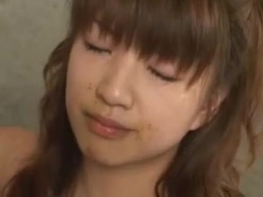 An Asian girl eats shit like a pro from the bowl.