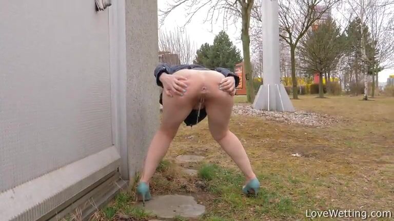 Pissing view from the back in the park
