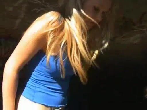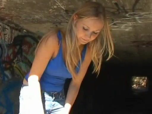 Stunning hot blonde and sexy poop under the bridge