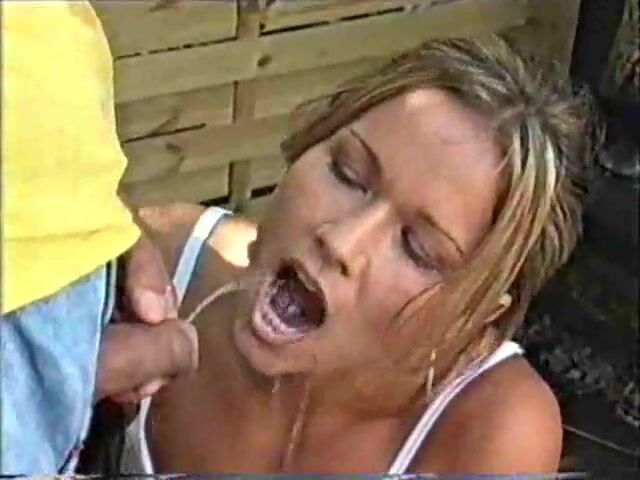 Pretty blonde girl taking pee in her mouth