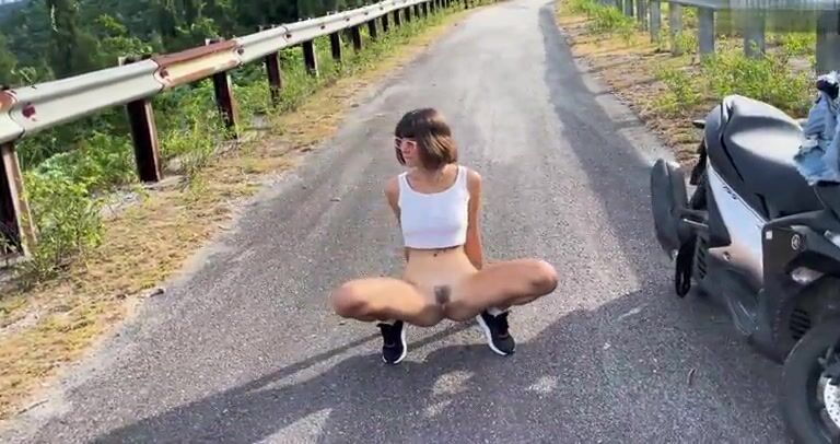 Stunning piss on the road