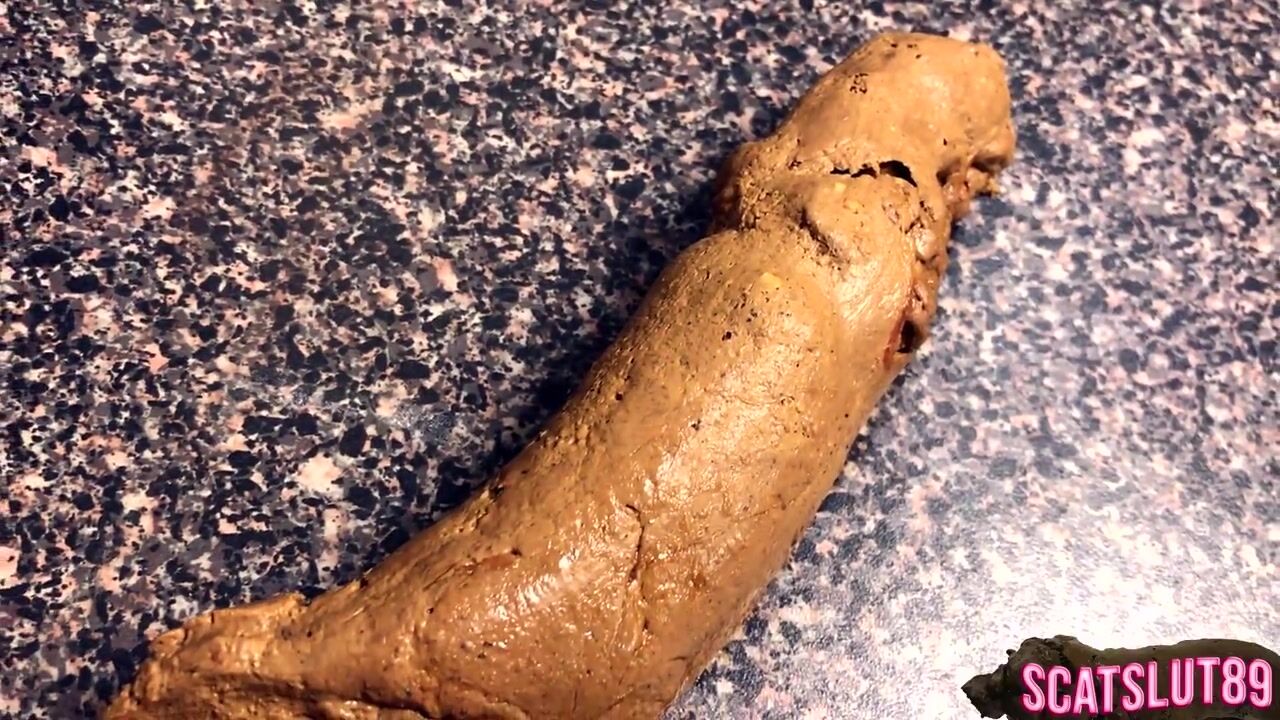 Long brown turd from her shaved ass