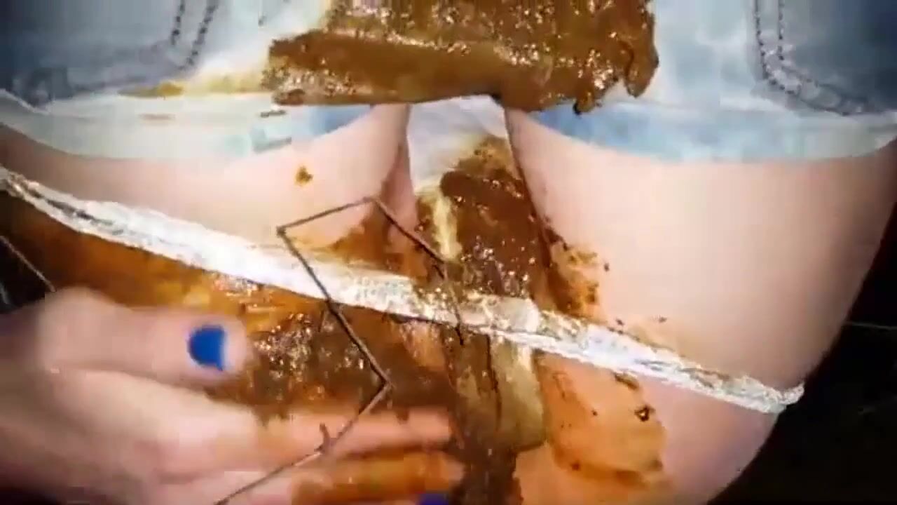Disgusting slut loves shit on her ass outdoor