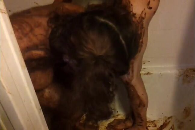 Mature dirty lady eating messy shit