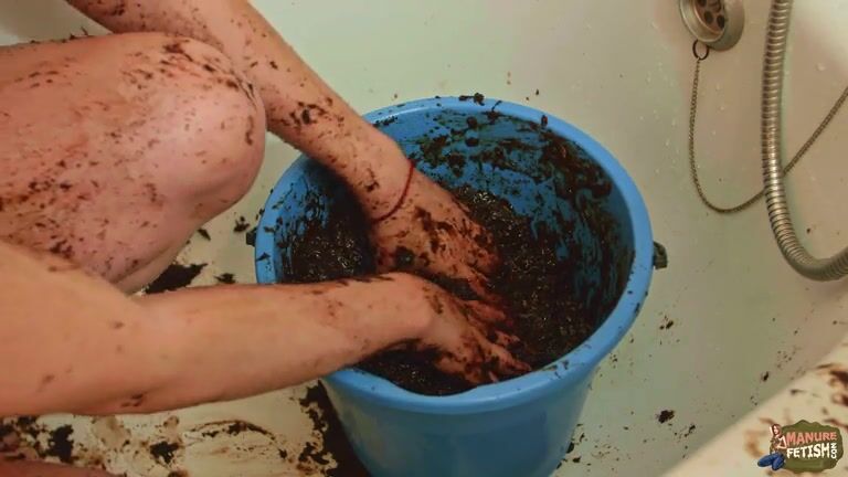Lady masturbates with shit bucket