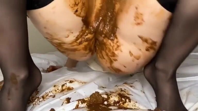 Shit covered babe enjoying dildo fuck