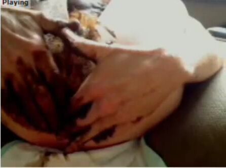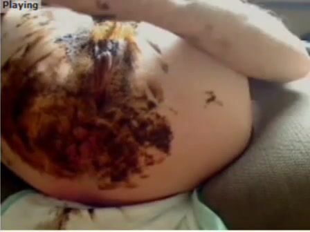 Horny lady smearing shit on her body