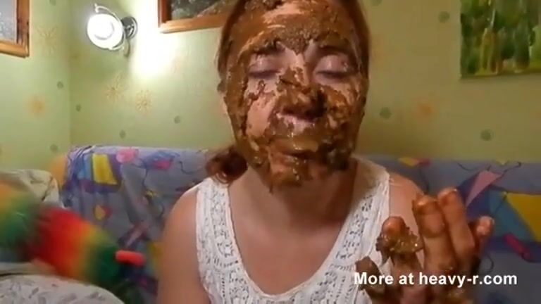 Nasty lady smearing shit on her face