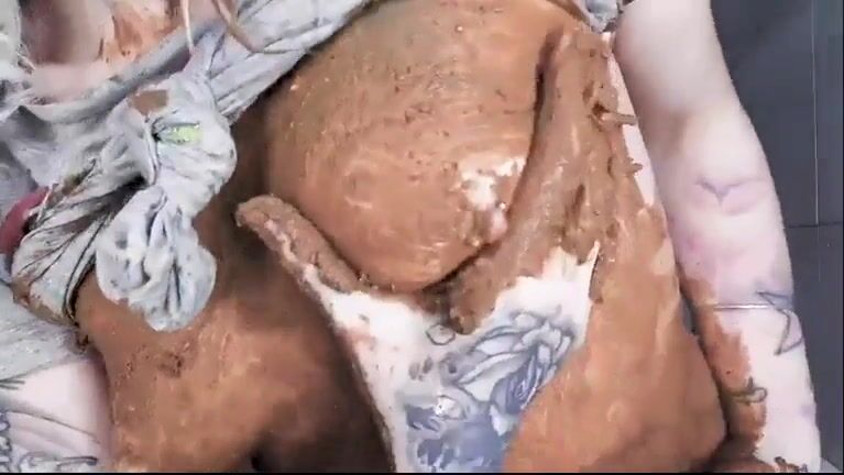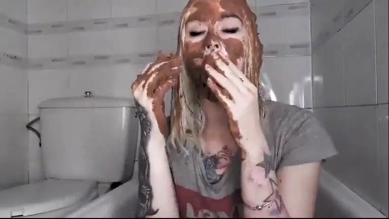 Sweet sexy babe smearing shit on her face and ass